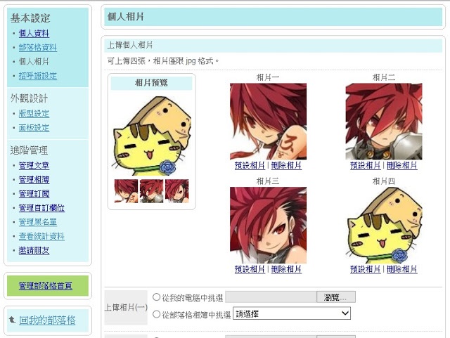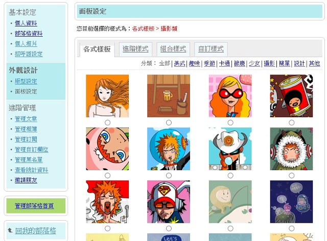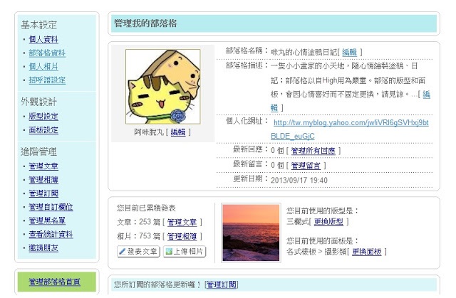 當時為了研究部落裝潢語法,收尋了好多相關資料,漂亮的裝潢語法;結果一次也沒用過,還是習慣樸素的介面。