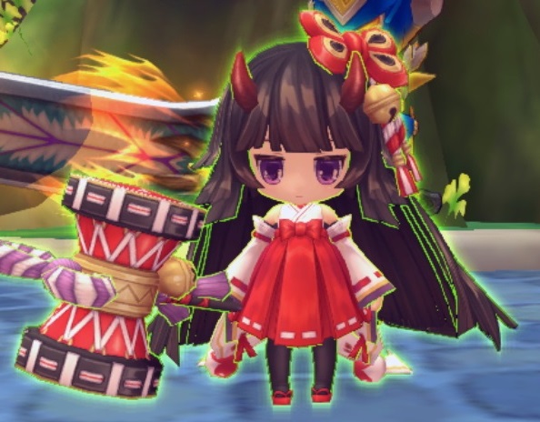 說到寵物啊,商城的福袋可以抽到稀有的東西,我花了兩個月的時間,每天解任務拿點數去抽,一點一點的累積,終於抽到了小巫女—月讀,當時真的感覺到辛苦是有代價的。